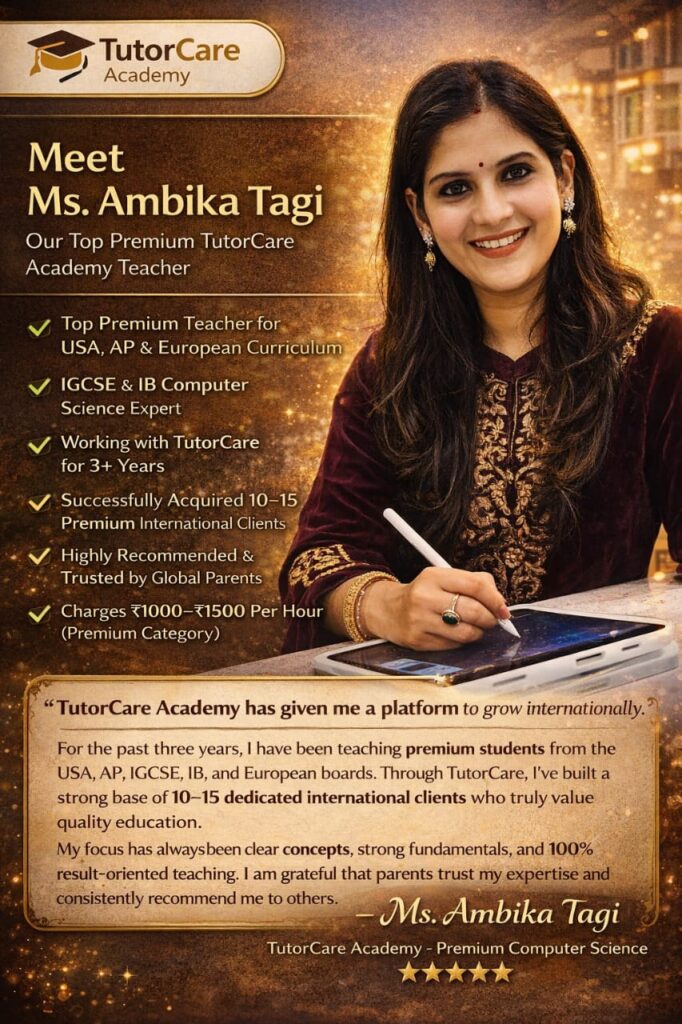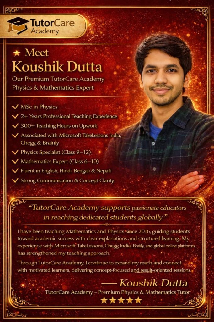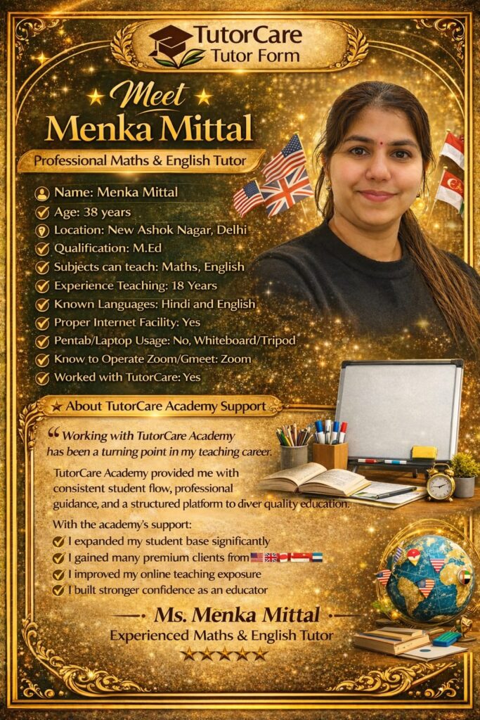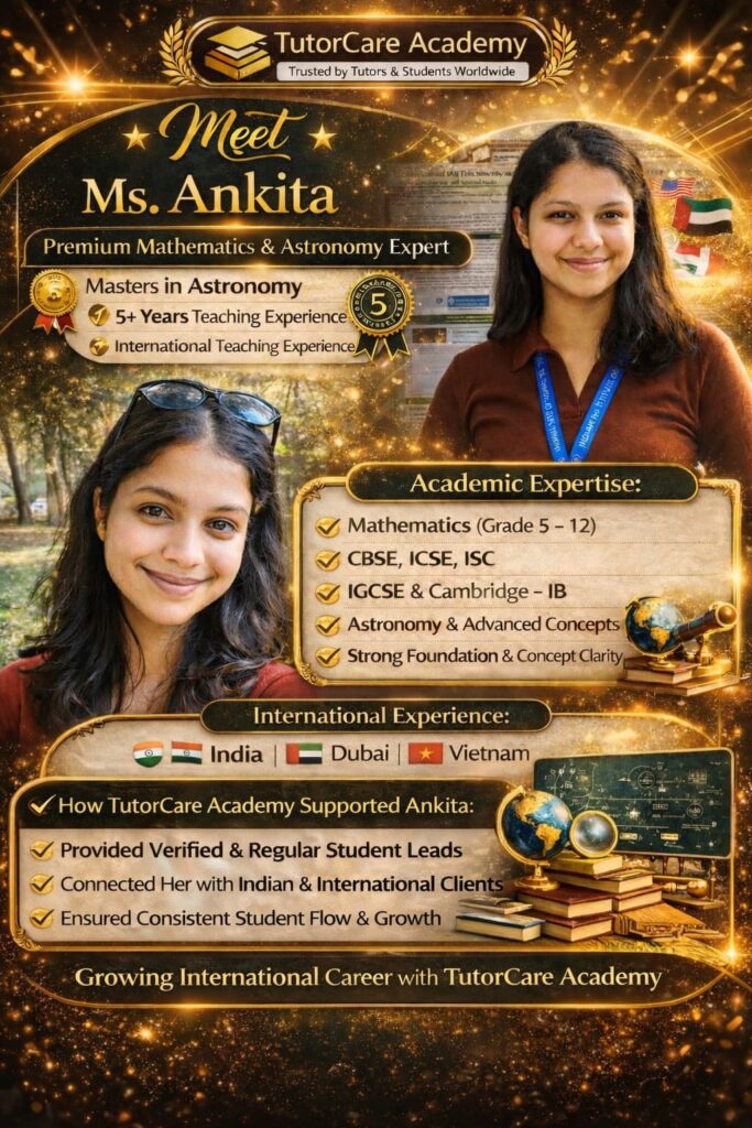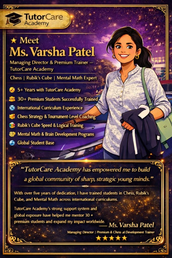 Meet Our Expert Educators 10+ years of Expertise in Education At Tutor Care Academy, our teachers are more than instructors — they are mentors, motivators, and academic partners in your child’s success journey.We believe that the right guidance, personal attention, and encouragement can transform every student into a confident achiever. Our Teaching Philosophy Student-centered learning approach Every lesson is designed around the student’s pace, strengths, and learning style to ensure maximum understanding. Concept clarity over rote memorization We focus on deep understanding of concepts rather than memorizing answers, helping students apply knowledge confidently. Encouraging curiosity and creative thinking We inspire students to ask questions, explore ideas, and think beyond textbooks. Personalized attention for every child Small batch sizes allow us to identify individual needs and provide focused support. Continuous assessment and feedback Regular evaluations and constructive feedback help track progress and improve performance consistently. Our Faculty Highlights Highly Qualified & Experienced Our educators are subject experts with strong academic backgrounds and years of teaching experience in school and competitive exam coaching. Updated & Exam-Focused Training Teachers are trained with the latest syllabus updates, exam patterns, and modern teaching methodologies. Skill-Based Learning Experts Specialized trainers for:Vedic MathsAbacusAI & CodingLanguage DevelopmentCompetitive Exams Our Expert Teachers Parent's Testimonials